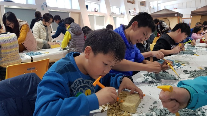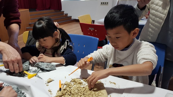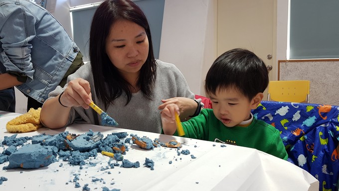 活動方式:本課程前30分鐘為古生物科普知識簡報,再進行DIY課程,全程約1.5小時(挖掘及彩繪擇一參加)。