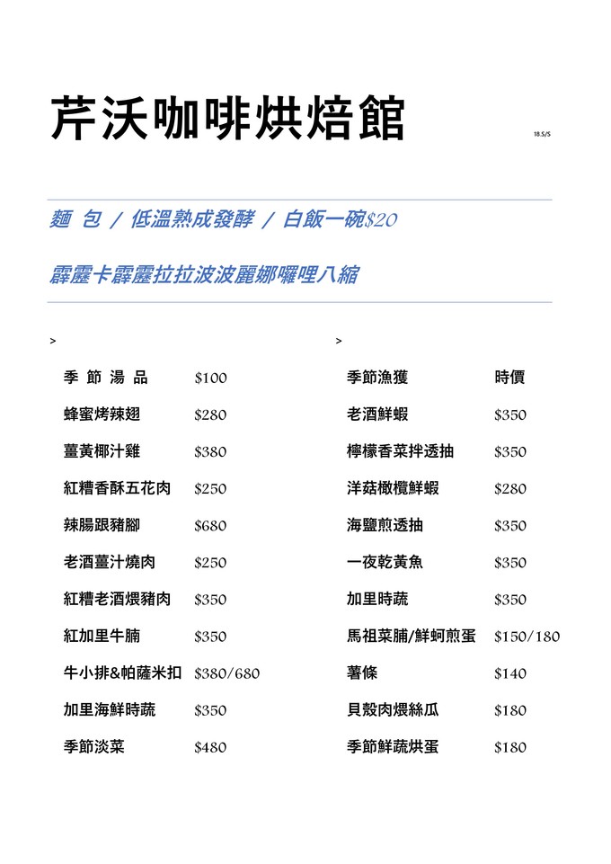 芹沃春季的新菜單出爐啦!旺季來臨歡迎先訂位!