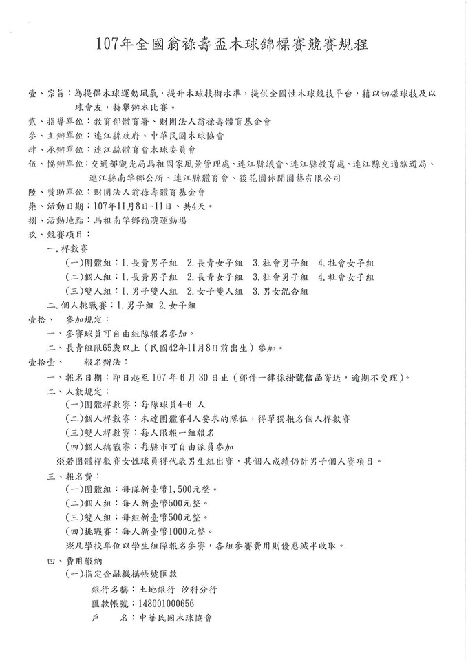 馬祖首場全國運動賽事--翁祿壽盃木球賽