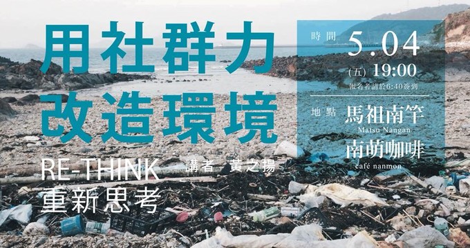 經過五年的累積,《RE-THINK 重新思考》成為台灣最具號召力與行動力的非營利組織之一,創辦人黃之揚同時也受邀為TED Talk講者、環保署社群行銷講師、CSR@天下雜誌筆者、創新拿鐵編輯,而這位身兼多職的大男孩,百忙之中受邀來到馬祖為大家分享關於他與《RE-THINK 重新思考》的故事。
