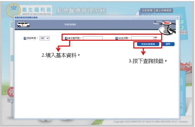 本局4/20~29辦理初級救護技術員(EMT-1)初訓成績已公告,請參訓學員們至「衛生福利部緊急醫療管理系統」(網址: