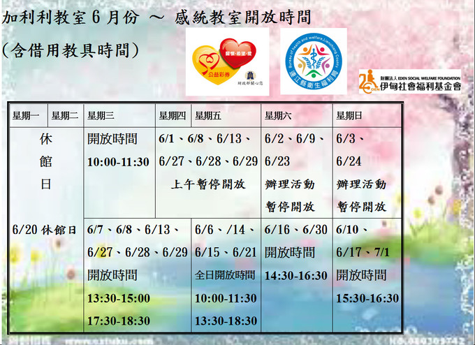 加利利教室-6月感統教室開放時間