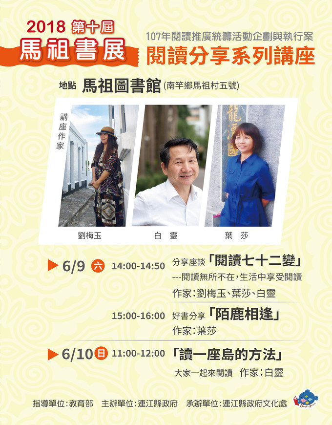 馬祖書展 6/9-10與作家葉莎、白靈、劉梅玉面對面