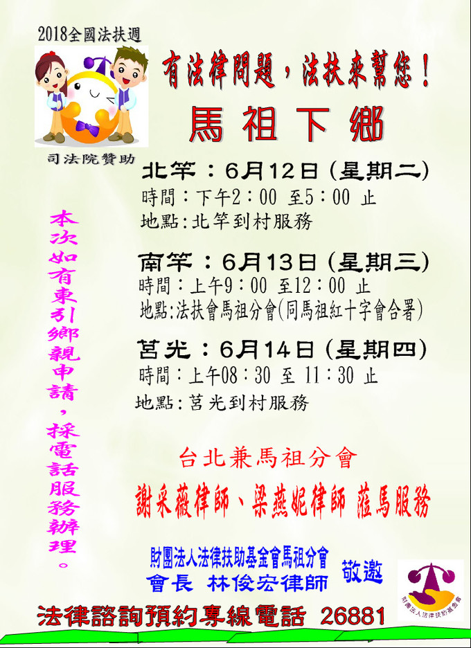 2018全國法扶日-6/12-14馬祖下鄉宣導