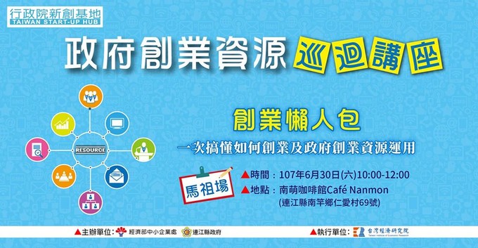為推動青年創業,行政院新創基地執行全國創業巡迴活動、支援地方創業服務,透過合辦活動與各縣市政府建立良好的聯繫管道,鏈結地方政府及其創業基地、民間創業服務單位等,增進地方對中央資源的瞭解。