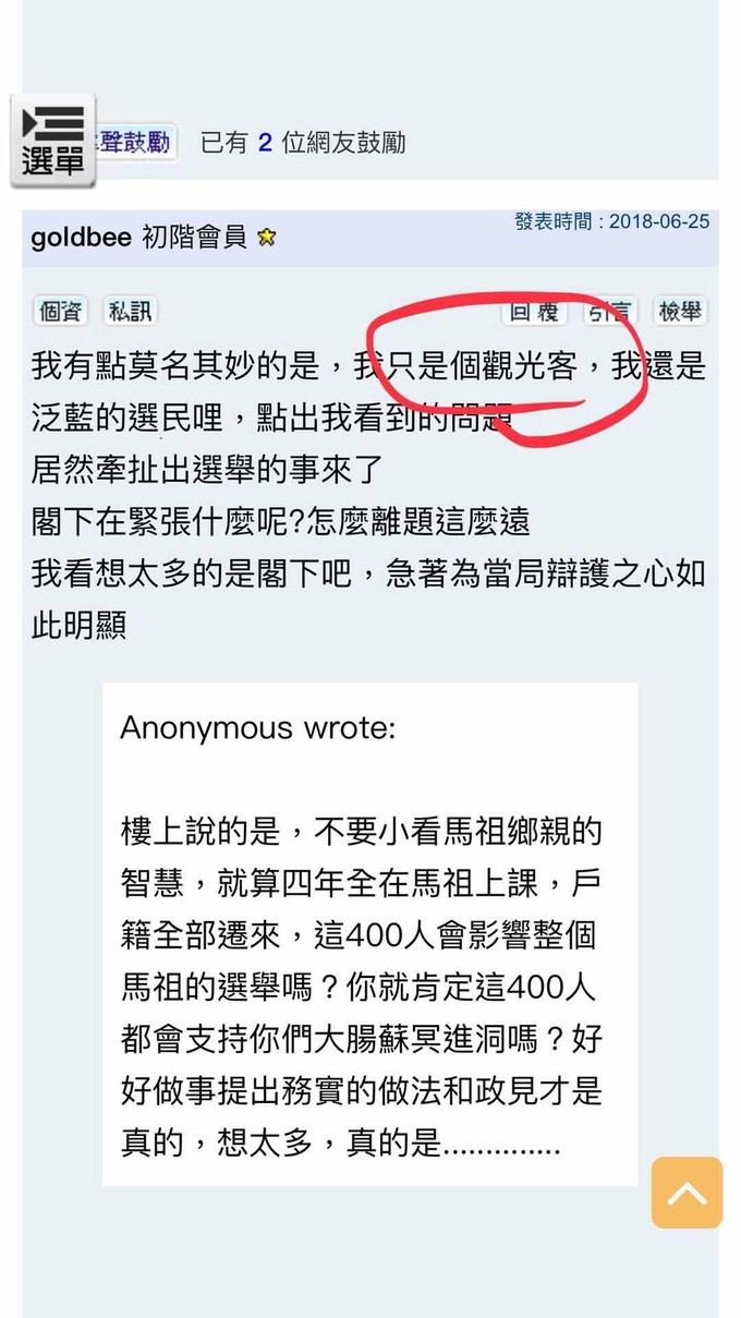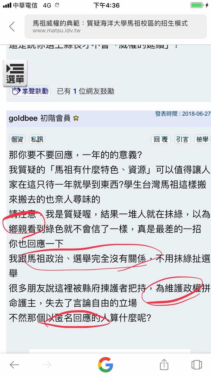 7通篇衝著馬祖「威權」與縣府而來的政治味發表、還真的是個「單純觀光客」喔……