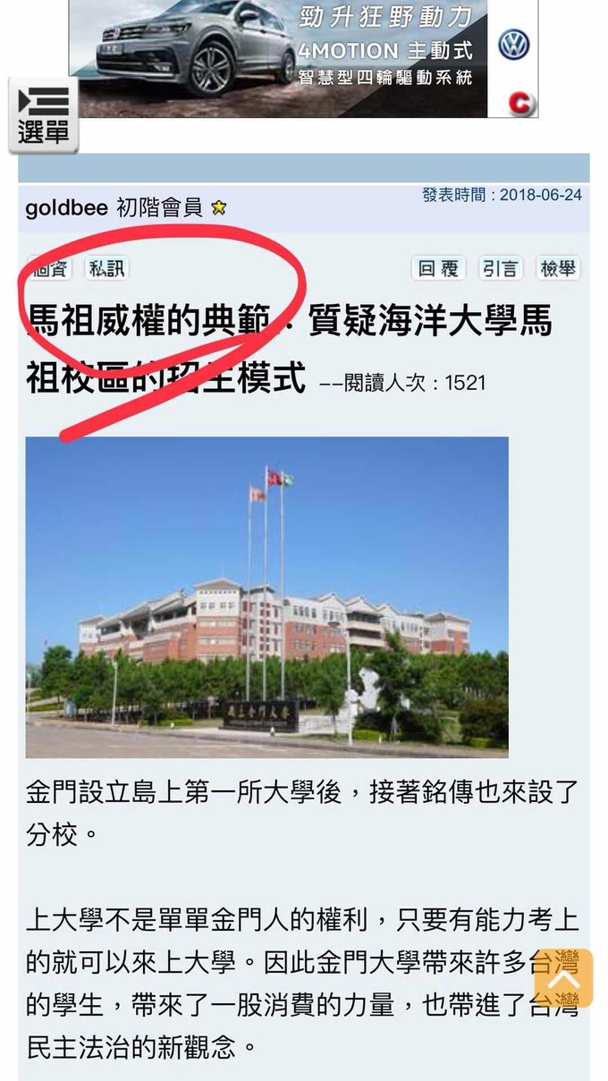馬祖威權的典範:質疑海洋大學馬祖校區的招生模式 --閱讀人次 : 459 這位開版者