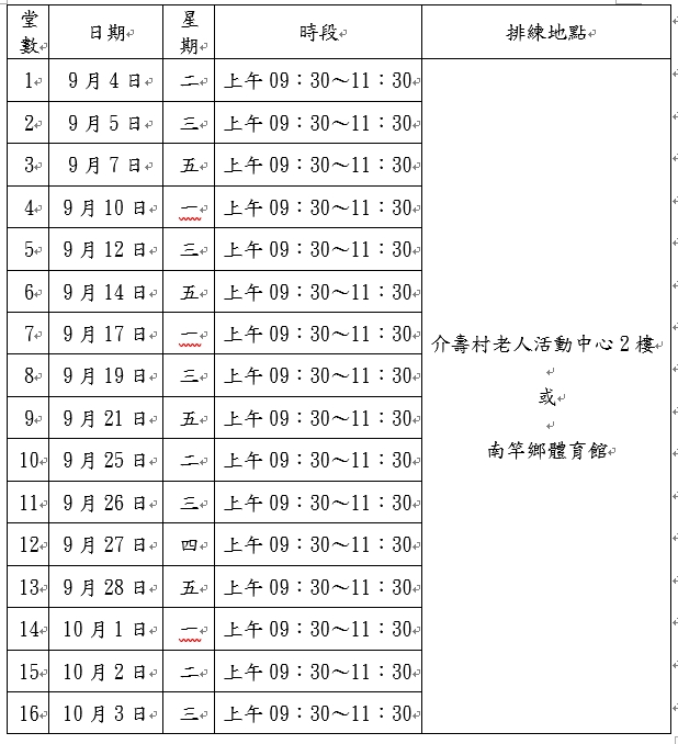 (二)並可全程參與排練者,預定排練時間如下: