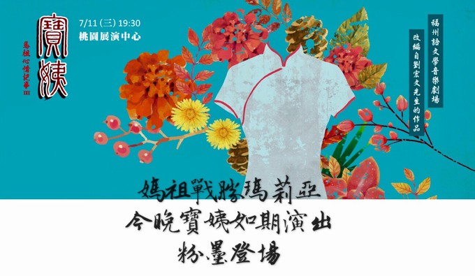 【記者曹重偉報導】跟著《寶姨》回到那些年,換上旗袍感受時代風華!馬祖心情記事3《寶姨》將於11日晚間將在桃園演出,縣府文化處特別舉辦旗袍趴,凡穿著旗袍來欣賞的女性朋友,當晚可於旗袍VIP席看戲,由現場工作人員帶位入席,還可獲贈神秘小禮物(限前50名),邀請桃園鄉親們穿上旗袍來看戲!