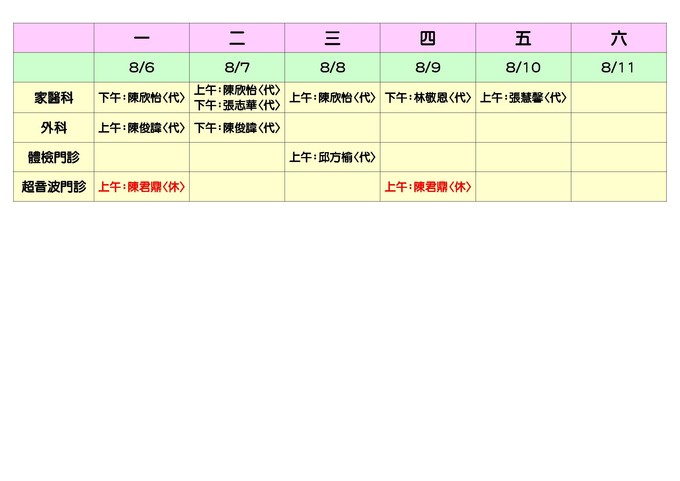 衛生所班表