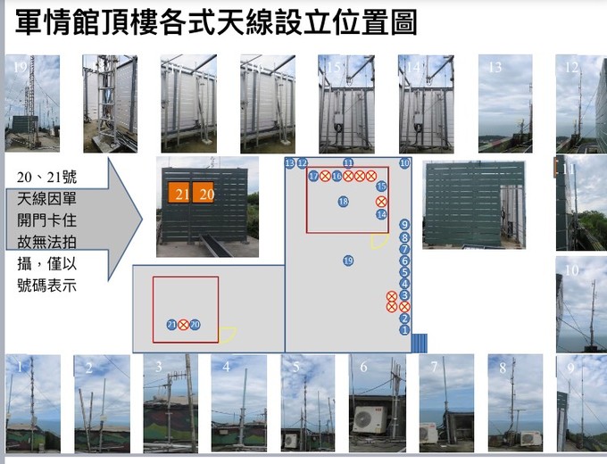 本案軍情館屋頂防漏工程,須將設置於樓頂之相關建物(天線或其他)移至他處或架高;經日前現勘後仍有部分天線設施無法確認保管單位,在此附上簡易圖示,敬請相關單位完成標記,並公告至9月11日止逕自施工。馬防部聯絡人鍾健銘上士0836-22101#641503或0980-278520