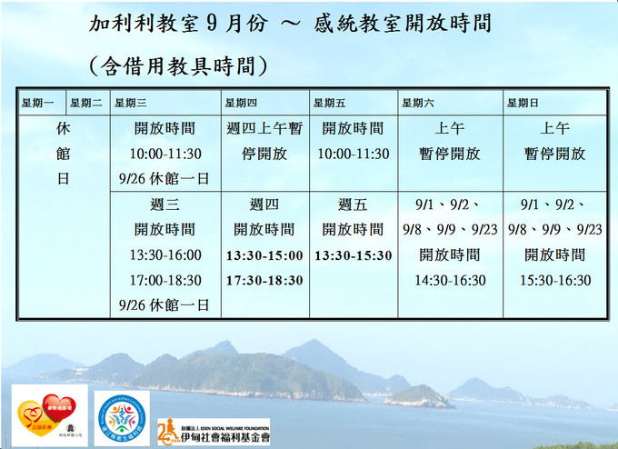 9月感統教室(加利利教室)-開放時間