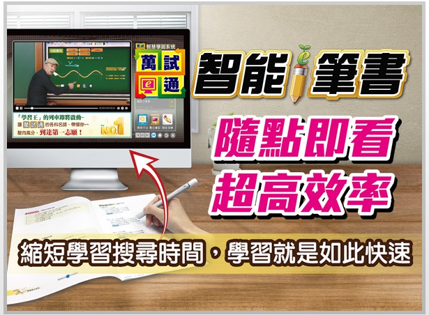 學習王科技的研發團隊更於2017年五月推出學習智能筆,結合最新科技的智能筆,真正將學生的學習數位化,透過智能筆的書寫讓上課的筆記也能利用編碼筆記與藍芽技術輕鬆整合到萬試通智慧學習系統內,讓學習紀錄是融貫的、是整合的、是真正數位化的。甚至學習中有任何的問題,只要輕點講義中的文字,系統立即帶出該章節的影音課程,讓學生立即就不明瞭之處學習、解惑。學習王科技推出領先業界的智能筆技術整合,並不是在譁眾取寵;而是我們堅信保持書寫與做筆記的習慣是有助於學生學習的成效。筆書乃中華文化千年的傳統,『筆書相會、名師相隨』則是學習王科技提供給學生的數位化學習承諾。