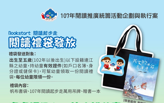 0至5歲小朋友(102年1月1日以後出生)閱讀禮袋發放,照常舉行,請家中有符合資格的小朋友家長,持小朋友有效身份證件,於9/8下午3:30至圖書館領取。
