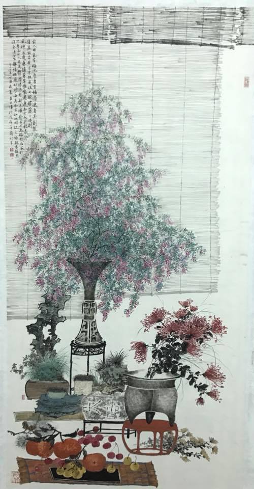 以文人畫為基底,擅長植物花卉描寫題材,創作一系列的中國水墨畫的吳士偉老師,是現今中生代水墨畫家中的佼佼者,作品以精緻的筆觸、細謹的烘染、雅艷的敷彩;營造出萬物皆入畫的至美情境,兼具文人清雅內涵與筆墨重彩交融,雅逸清健的筆情墨趣,聚焦於時光的消融,花朵的綻放與謝落,藉由對好花長在的吟詠,傳達他對生命起落的感懷與體悟,傳達出水墨繪畫當代的內斂新面貌。吳士偉老師是現今傳統文人水墨創作在藝術拍賣市場有一席之地的水墨畫家。