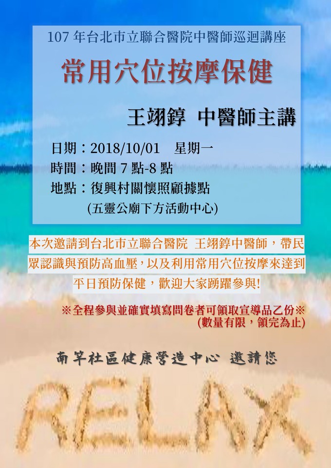 中醫講座-常用穴道按摩保健