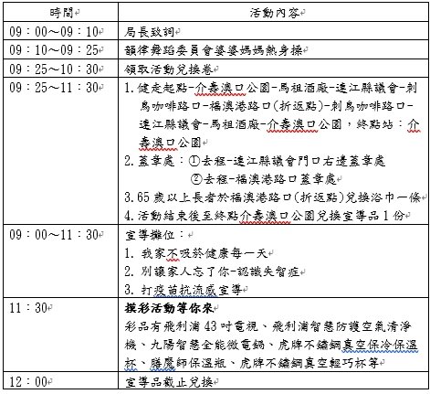 四、經費來源:由連江縣公益彩劵盈餘分配基金及菸品健康福利捐補助