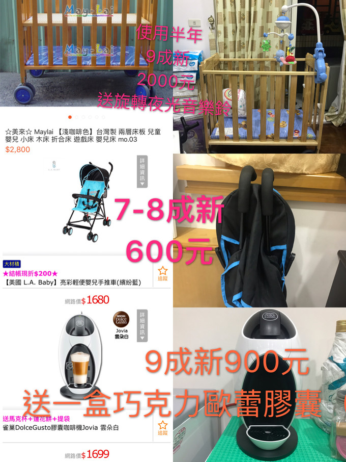賣二手嬰兒床嬰兒車尿布膠囊咖啡機