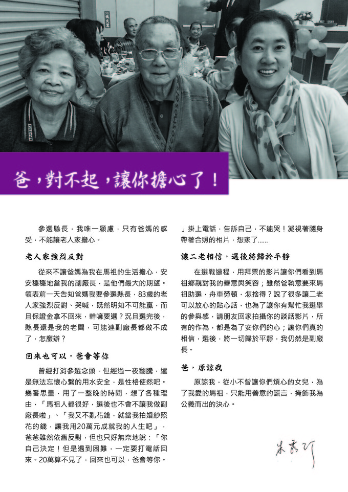只是,我不太懂為什麼內容要提到「馬祖人都很好,選後也不會不讓我做副廠長啦」?