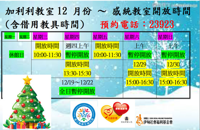 12月感統教室(加利利教室)-開放時間