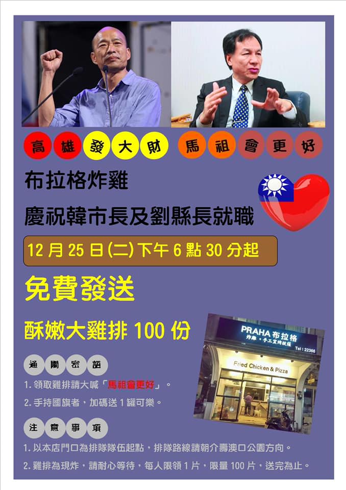慶祝韓總、劉縣長就職 布拉格送雞排