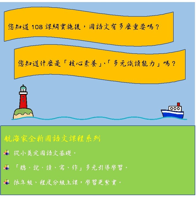 *航海家英語「全新國語文系列」說明會 --閱讀人次 : 1208 您知道108課綱實施後,國語文有多麼重要嗎?