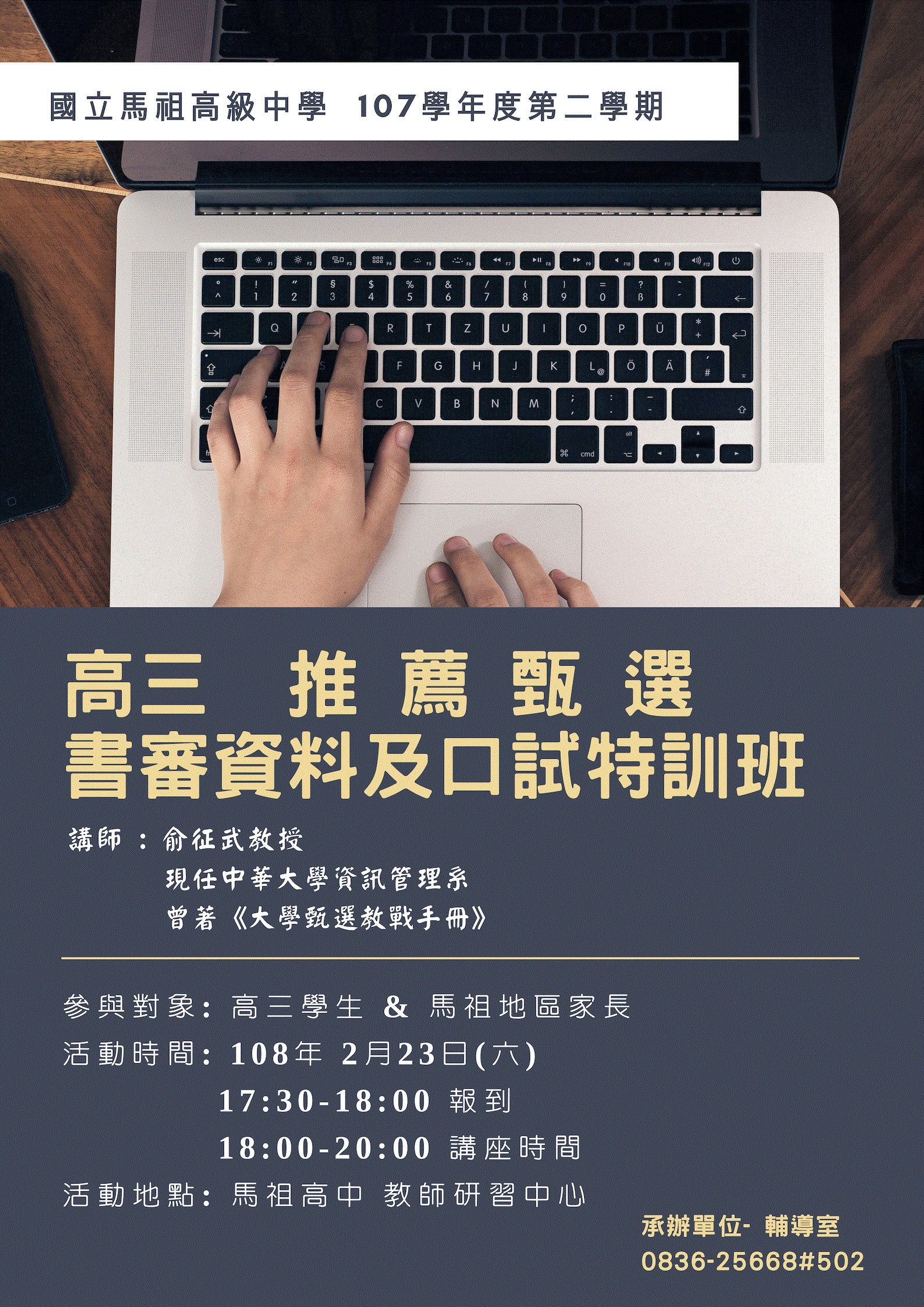 如有相關問題,請電洽馬祖高中輔導室蔡老師(0836)25668分機502。