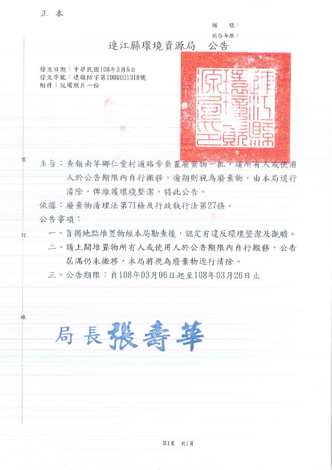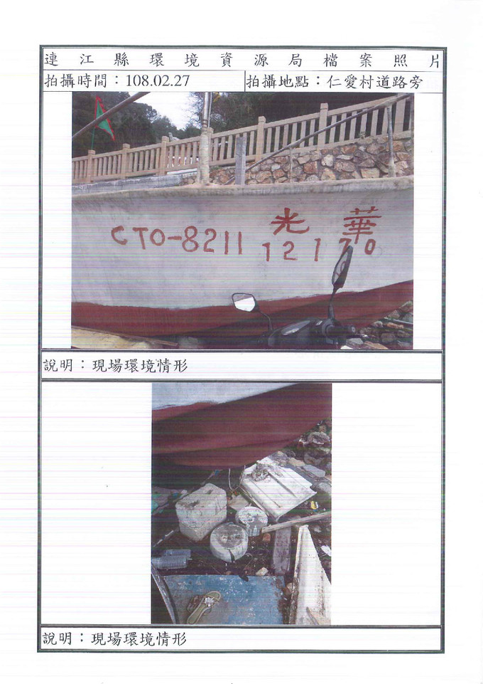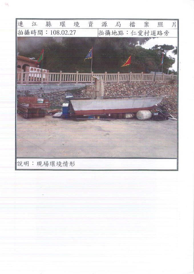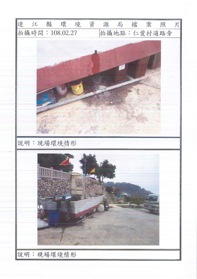 查報南竿鄉仁愛村道路旁棄置廢棄物一批