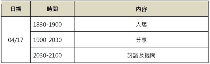 *時間:108.04.17(三)1830-2030