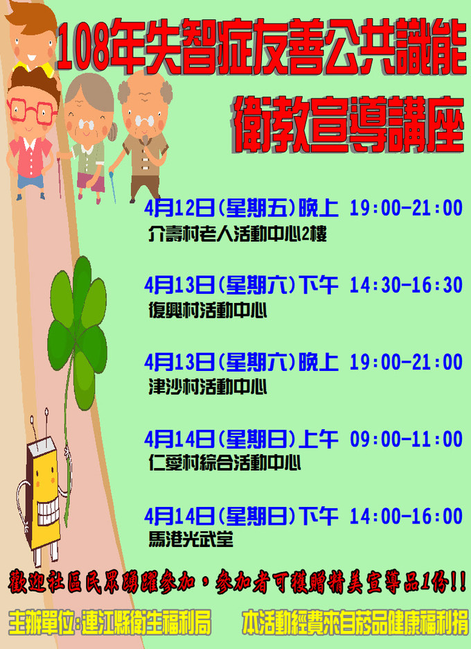 失智症友善公共識能衛教宣導 歡迎參加