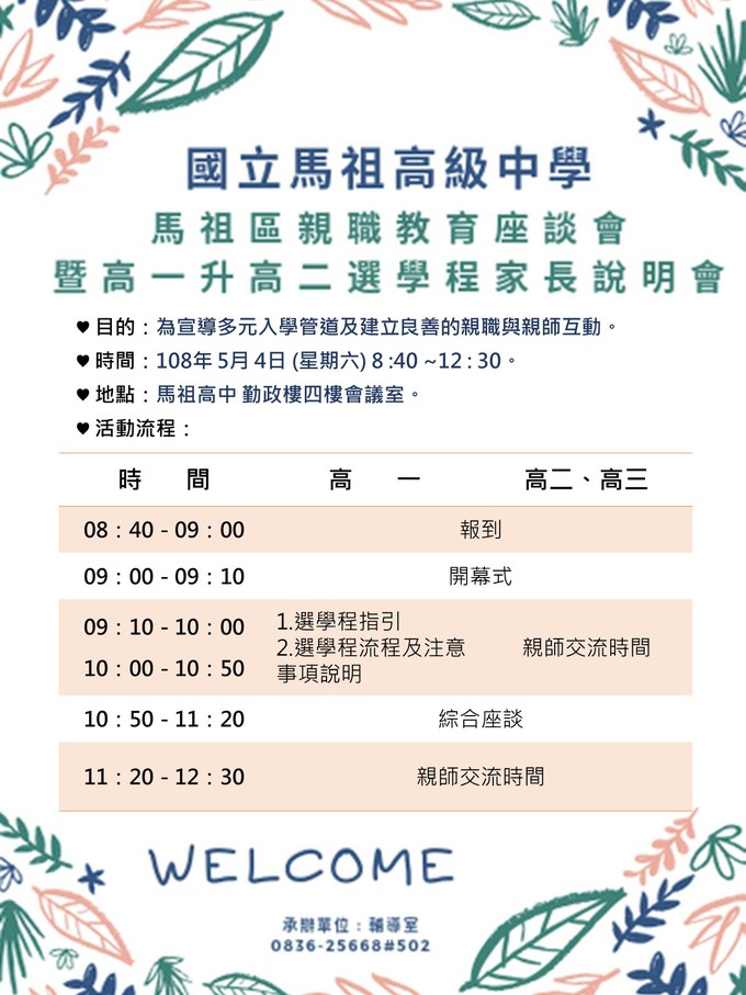 馬中 5/4親職教育座談暨選學程說明會
