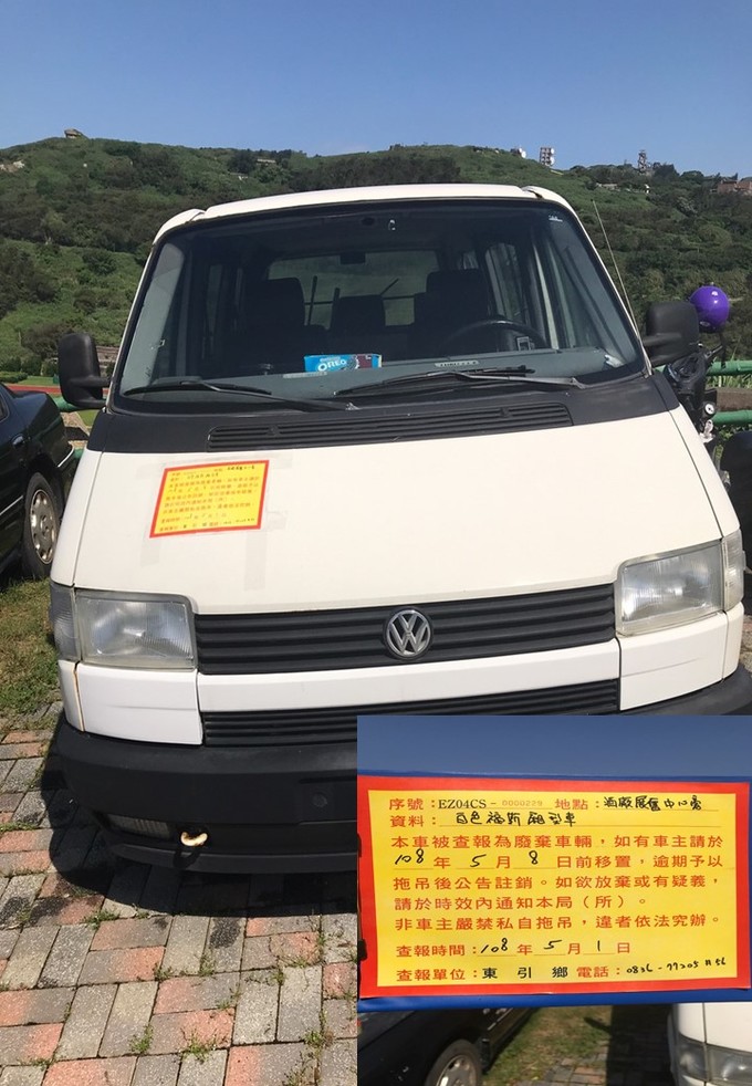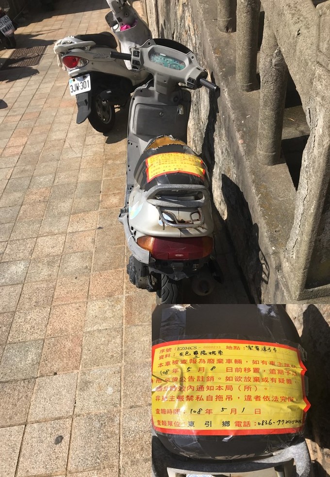 東引鄉公所張貼查報廢棄車輛乙批