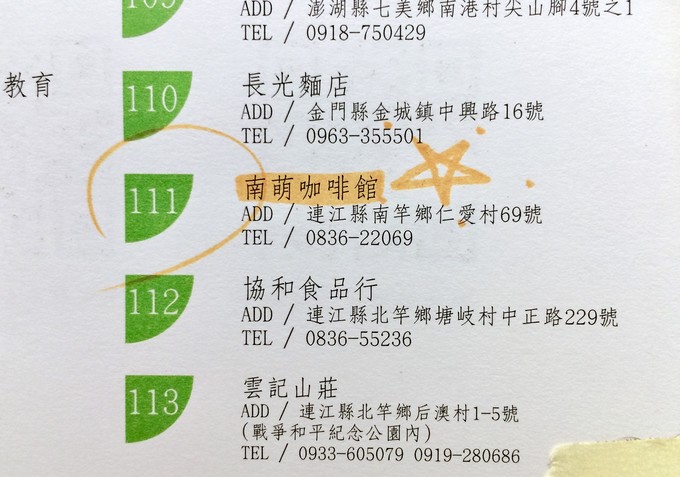 地點:馬祖南竿南萌咖啡館