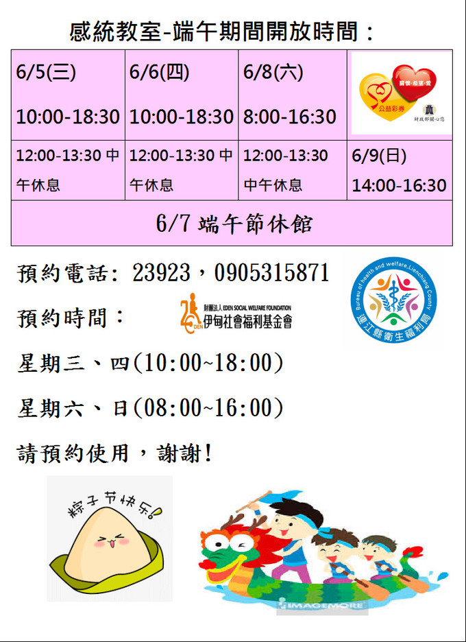 感統教室-端午期間開放時間