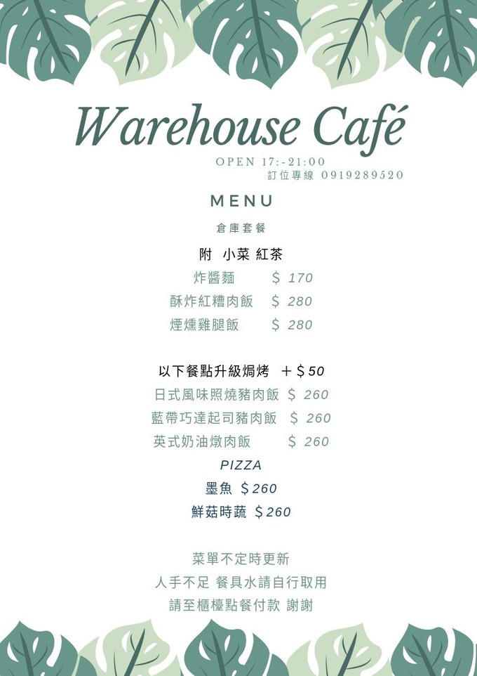 ♥菜單將不定時更換 推出新菜色 菜單資訊將會po於倉庫咖啡 FACEBOOK