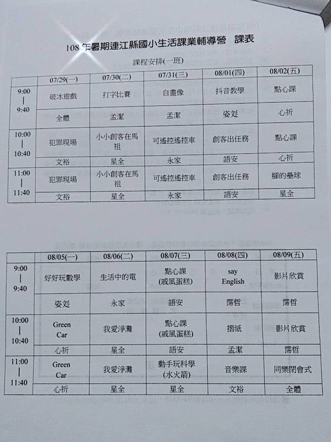 二、108年連江縣國小生活課業輔導營(簡章/報名表及課程參附檔),費用無。