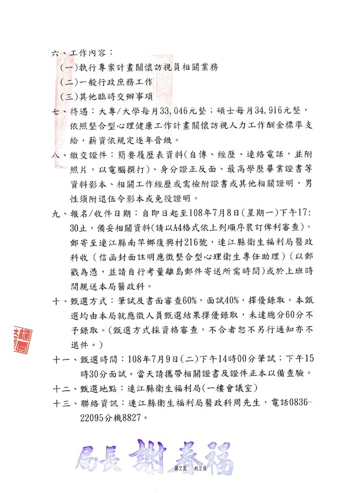 108年心理健康相關業務-專任助理 徵人