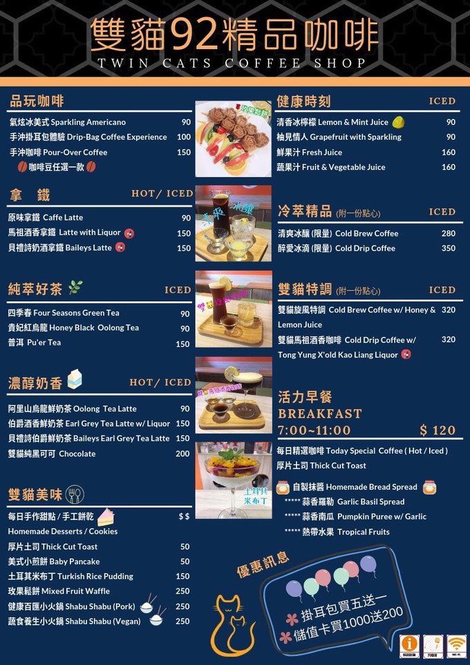 雙貓92精品連鎖咖啡 全新MENUMENU