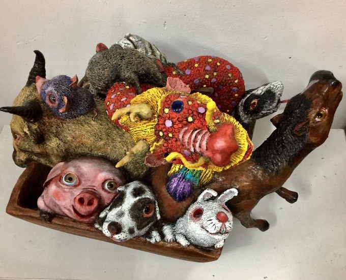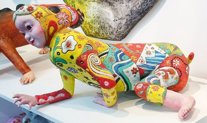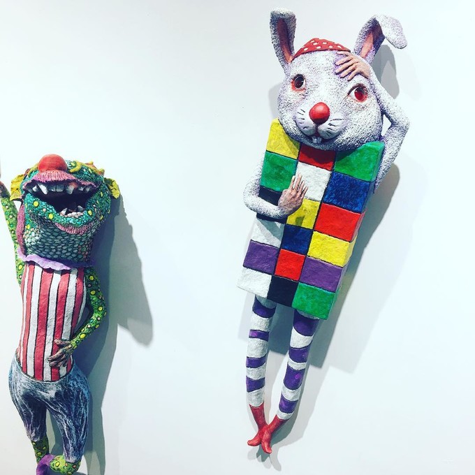 擅長運用妝點鮮豔色彩的動物形體搭上可愛的人型臉孔,顛覆傳統動物表現形式,歌詠生命的燦爛語美麗,令人印象深刻!