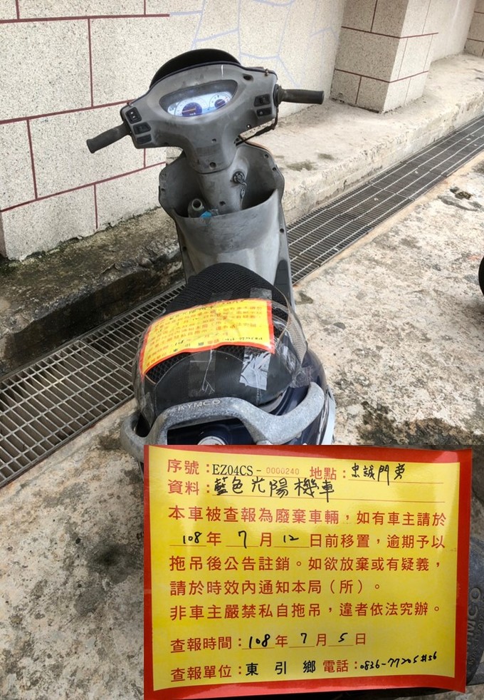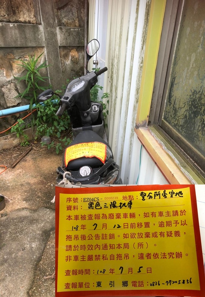 一、被查報為廢棄無牌車輛,如有車主者請於108年07月12日前移置,逾期本所將發文請縣府環資局予以拖吊後公告註銷。