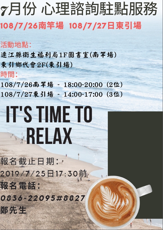 108年7月心理諮詢、談心放鬆紓壓,歡迎大家報名 !