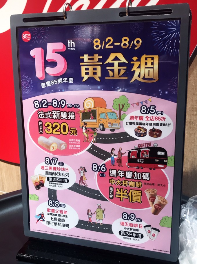 8/5 85度C週年慶 全館85折