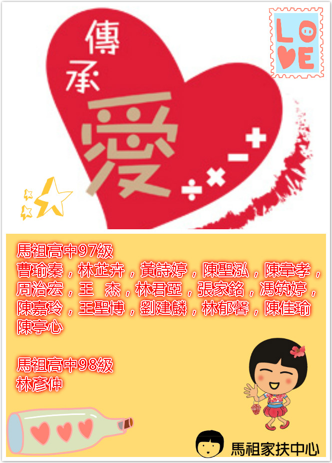感謝馬祖高中97,98級的學長姐,捐贈助學金2萬元,