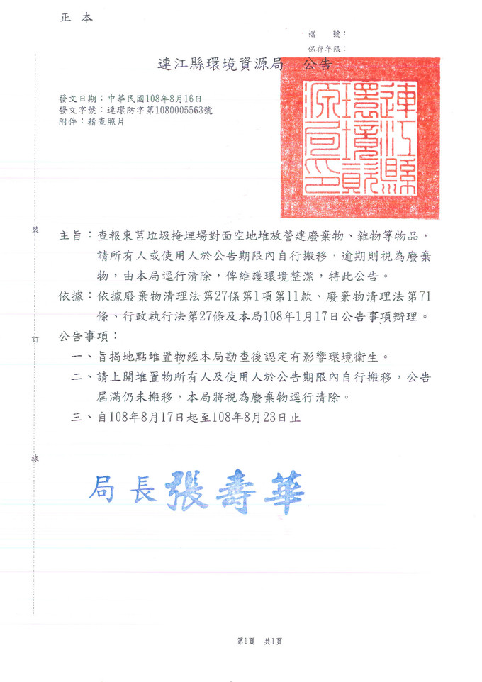 查報莒光鄉棄置廢棄物一批