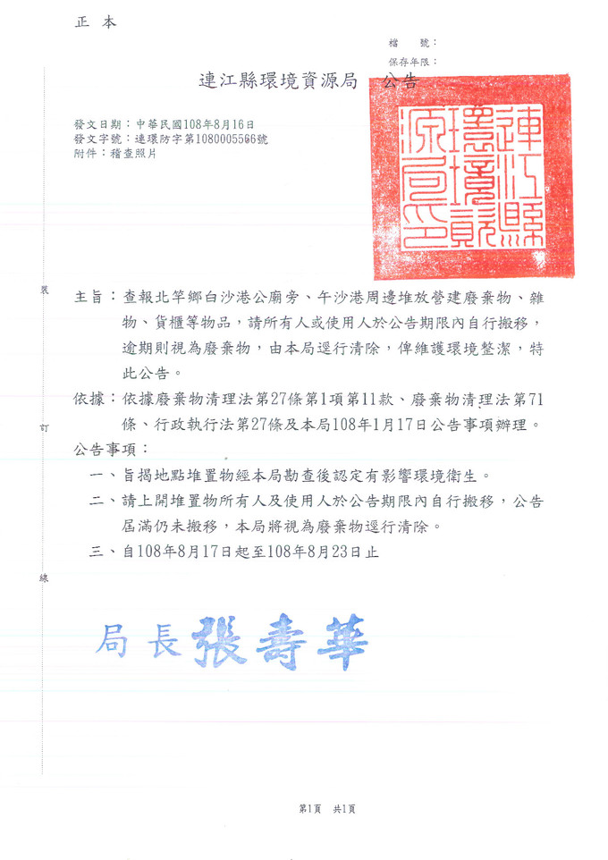 查報北竿鄉棄置廢棄物一批