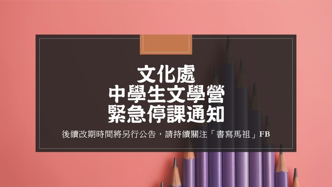 原訂8/23-8/25舉辦之「中學生文學營」課程,活動因颱風暫停。