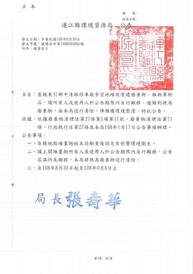 查報東引鄉棄置廢棄物一批
