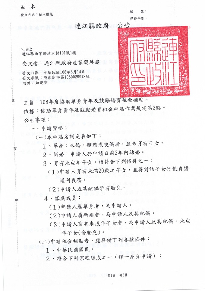 單身青年及婚育租金補貼 受理至9/27 --閱讀人次 : 950 【受理時間】自108年9月2日(星期一)至108年9月27日(星期五)截止。