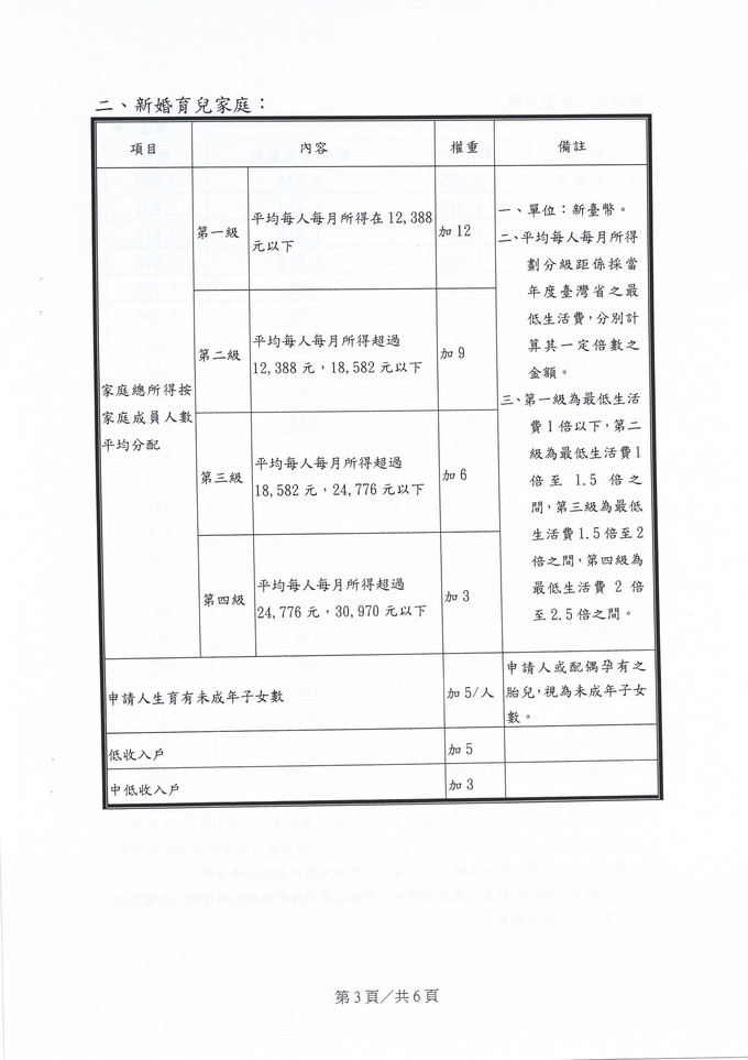 【家庭成員之平均每人每月所得應低於】新台幣27,838元。