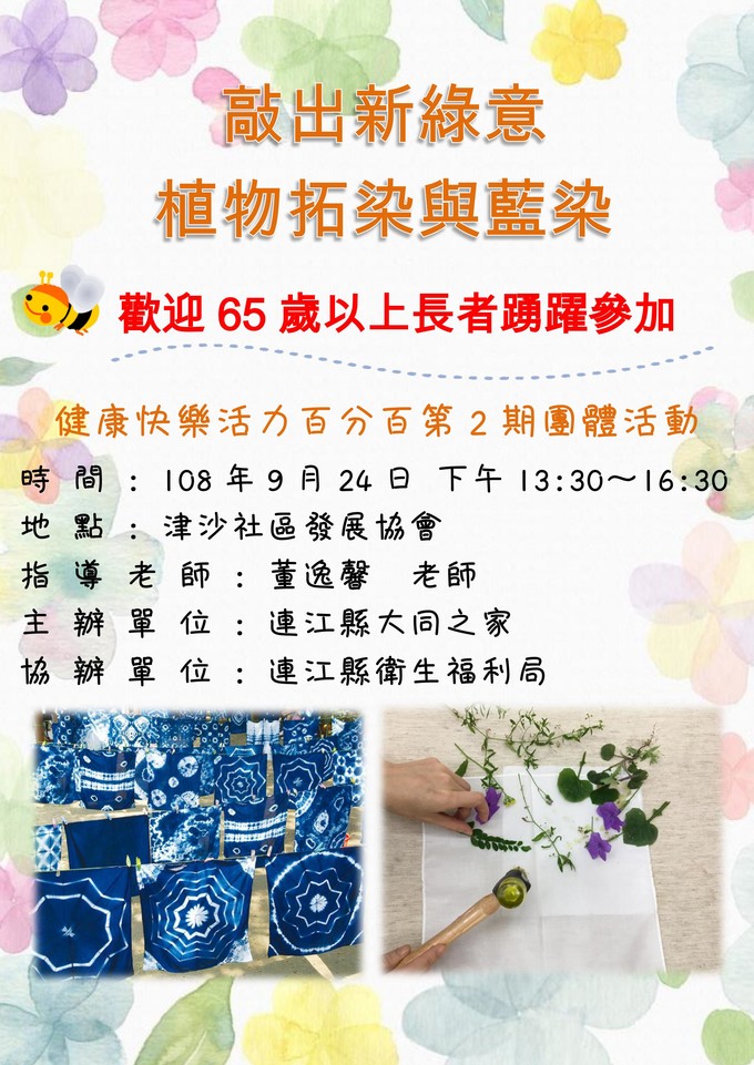 歡迎65歲以上的長輩們一起來動手做屬於自己的藍染衣服唷~~